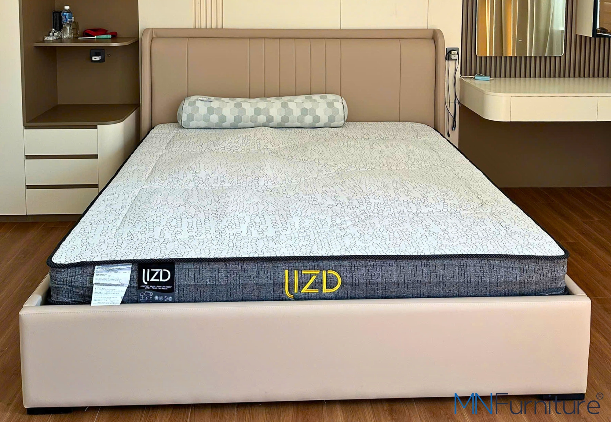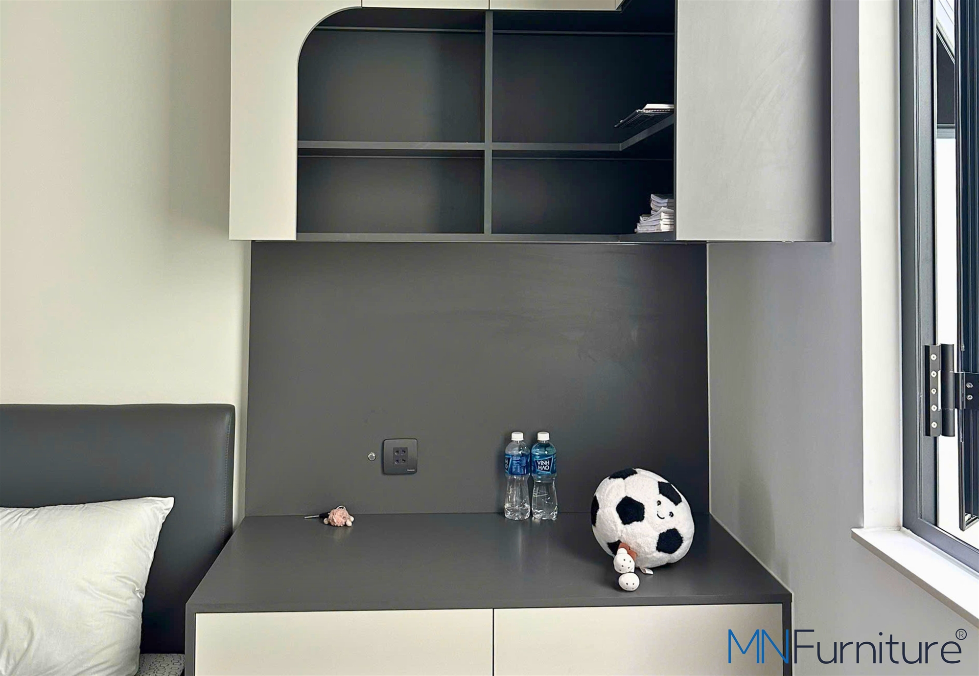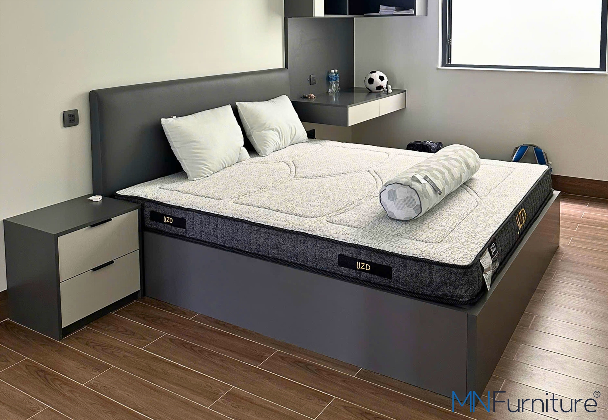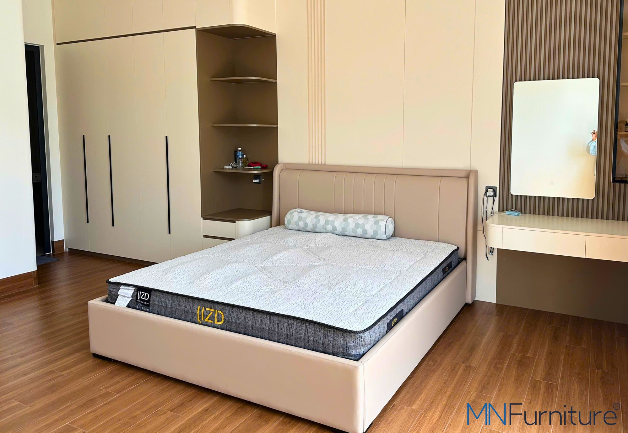 - Phần gỗ: 100% gỗ An Cường - Thương hiệu sản xuất và phân phối vật liệu gỗ công nghiệp lớn nhất tại Việt Nam, đáp ứng tiêu chuẩn quốc tế như E1, E0 (Châu Âu), CARB-P2 (Mỹ) về độ an toàn và thân thiện với sức khoẻ.