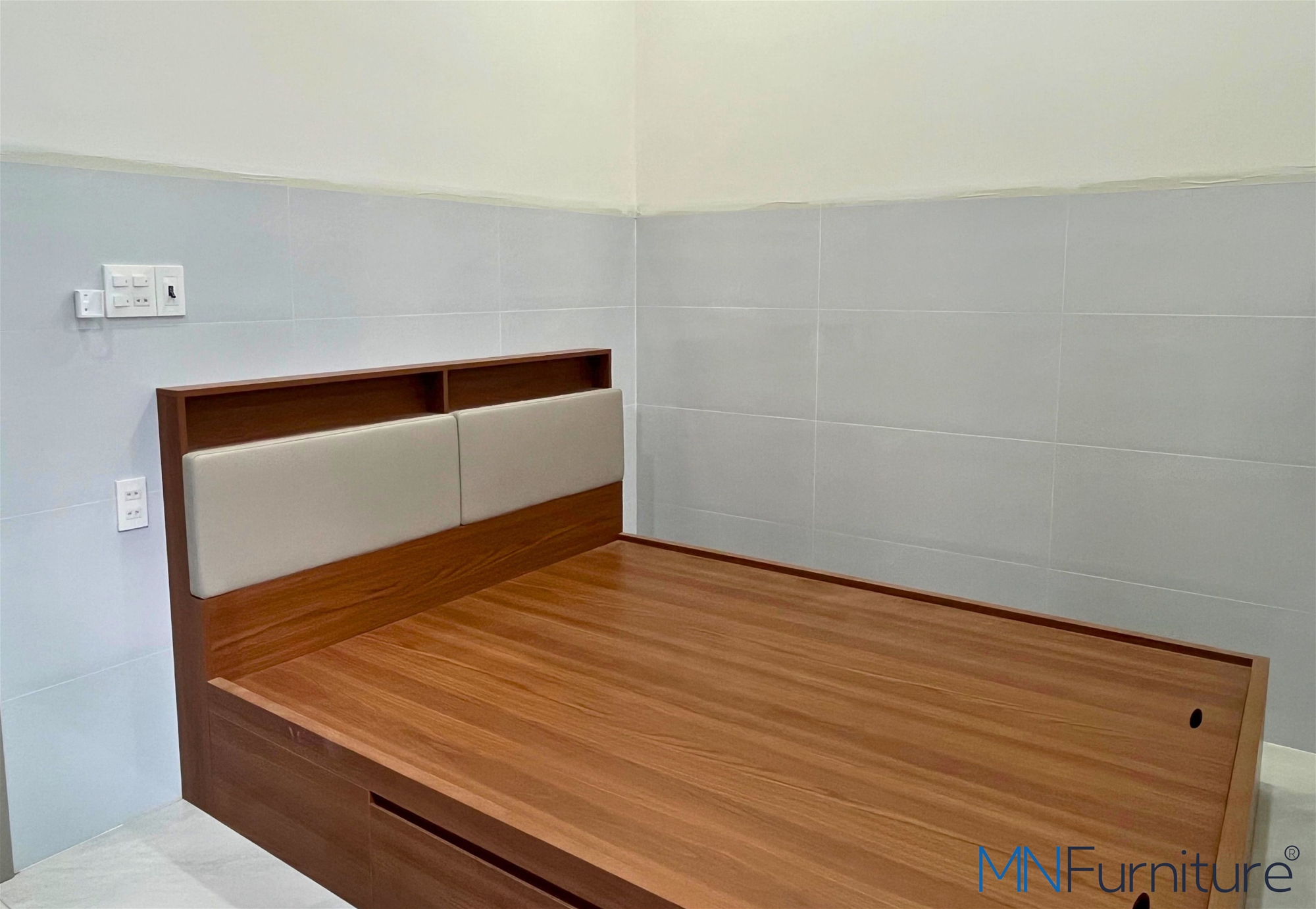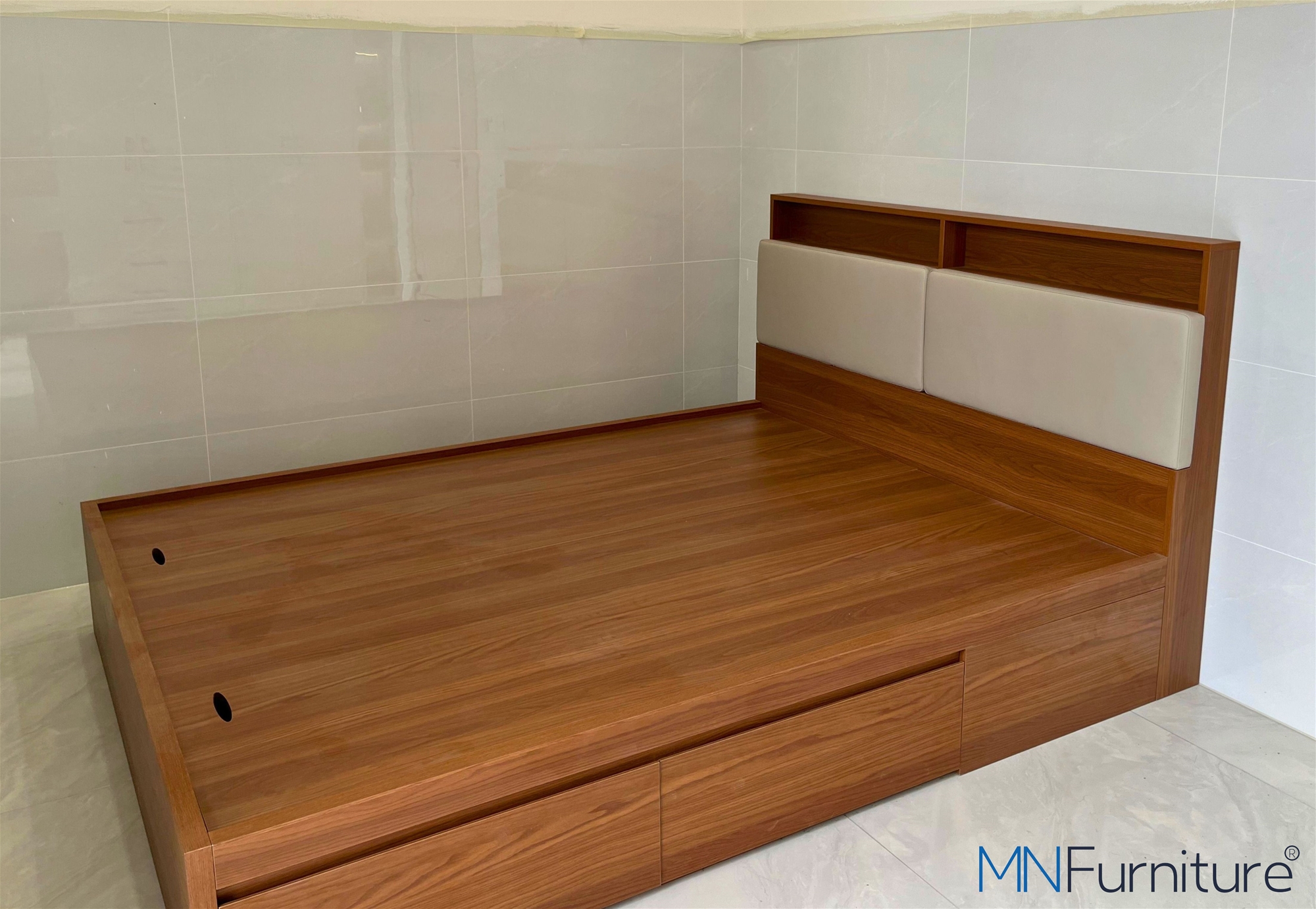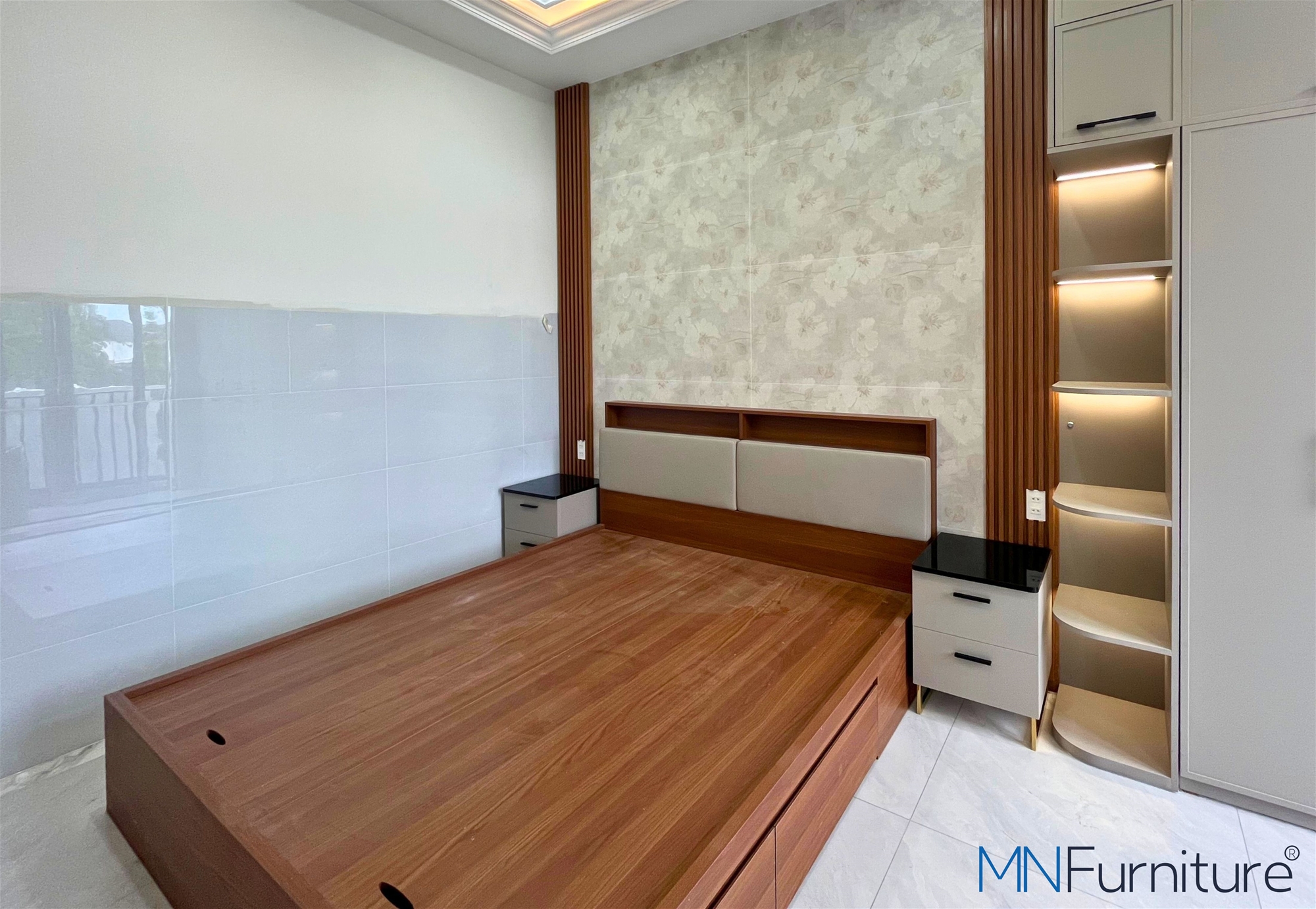 - Phần gỗ: 100% gỗ An Cường - Thương hiệu sản xuất và phân phối vật liệu gỗ công nghiệp lớn nhất tại Việt Nam, đáp ứng tiêu chuẩn quốc tế như E1, E0 (Châu Âu), CARB-P2 (Mỹ) về độ an toàn và thân thiện với sức khoẻ.